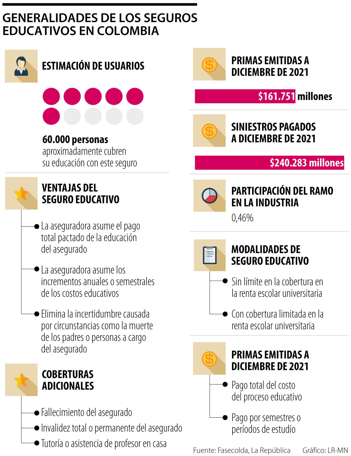 A través del tiempo, otras aseguradoras como Sura, Mapfre y Seguros Bolívar han incluido los seguros educativos dentro de su oferta de servicios, llegando a un público muy amplio. Según cifras de Fasecolda, en Colombia más de 61.000 personas han optado por garantizar los estudios superiores de sus hijos o familiares por medio de este esquema de protección.