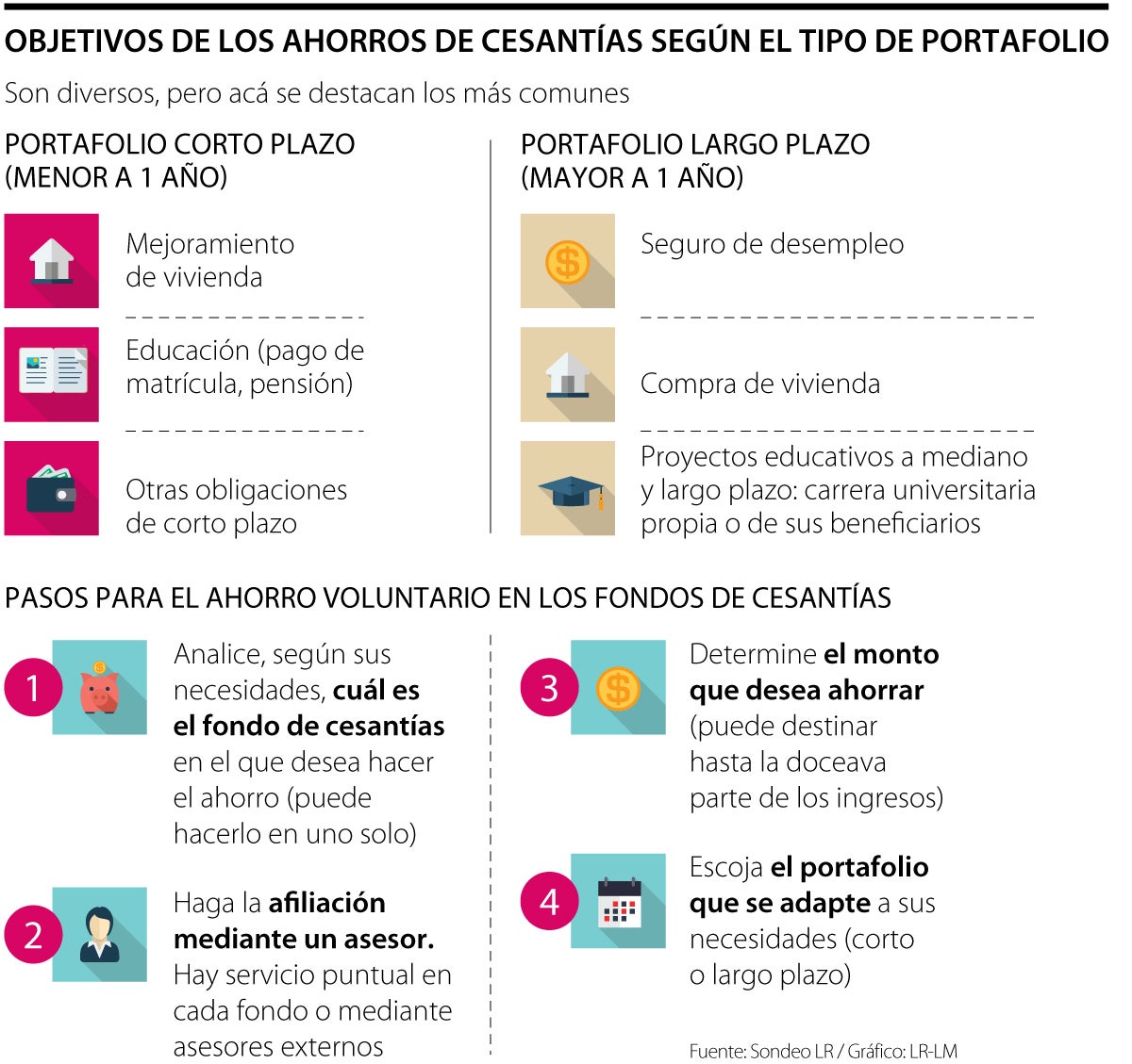 En el portafolio a corto plazo el independiente puede ahorrar sus cesantías y retirarlas en un periodo no mayor a un año. “Si bien es una decisión simple para los afiliados, va muy en sintonía con el momento en que se vayan a usar. Si es para los próximos tres a seis meses es ideal elegir el de corto plazo, que es el de preservación”, explicó Francisco Cubillo, líder de servicios de Protección.