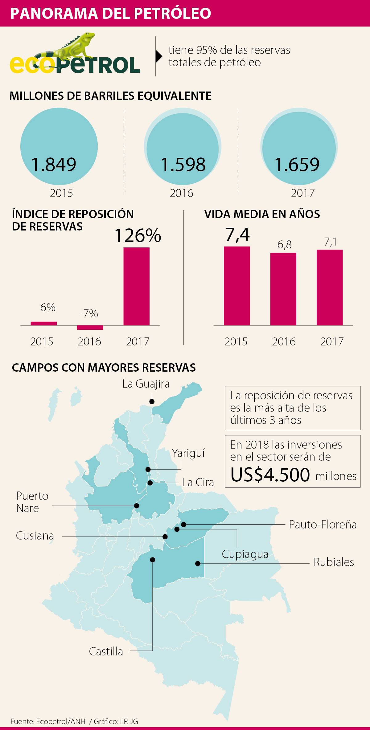 La caída en el precio internacional del crudo por dos años seguidos originó una crisis petrolera. Sin embargo, en cuanto a Ecopetrol, que cuenta con 95% de las reservas en el país, el año pasado fue positivo y cerró con el aumento de sus reservas a 1.659 millones de barriles de crudo.