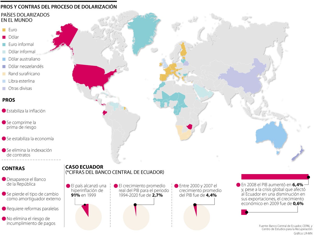 Para el gerente de investigaciones económicas del Banco de Bogotá, las economías que se dolarizan “lo hacen porque tienen problemas de estabilidad económica”, que puede venir de varios frentes: una inflación elevada o inestabilidad social y política. “En el caso de Ecuador, la dolarización se convirtió en un ancla que evita mayores problemas desde el punto de vista económico”, dijo.