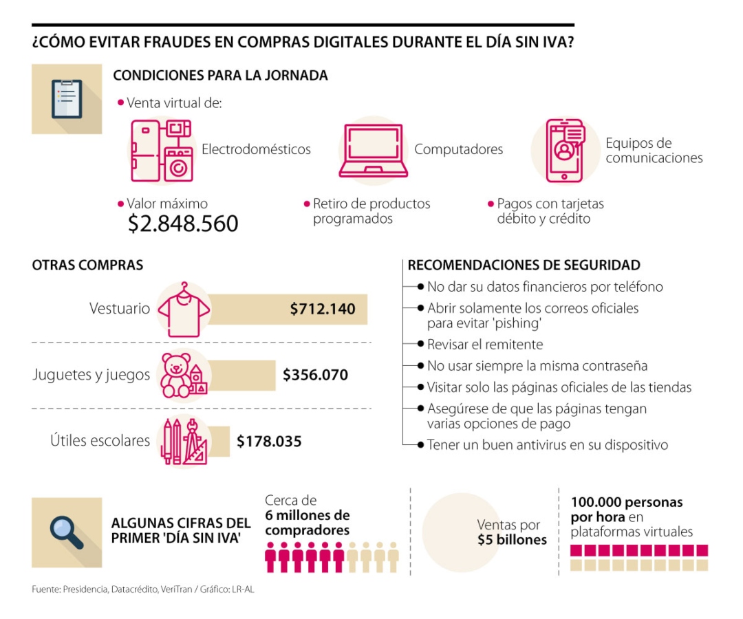 “Lo importante es observar que las páginas sean las oficiales y no entrar a páginas falsas que buscan capturar la atención y datos de los clientes. Generalmente, en este tipo de páginas de comercio electrónico hay un botón de pago y diferentes opciones, como el PSE, y eso da seguridad. Este es el modelo actual, pero nuestra recomendación es migrar a modelos de tokenización”, reseñó.