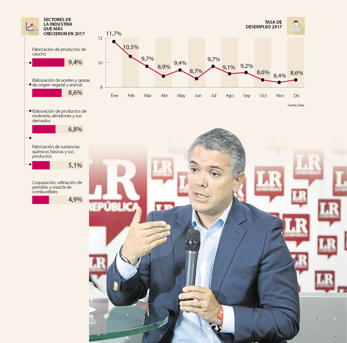 La propuesta económica del candidato del Centro Democrático, Iván Duque, se puede resumir en una reforma fiscal y en el impulso del aparato productivo gracias a facilidades comerciales y al uso de herramientas modernas con el fin de subir el crecimiento del PIB por encima del 1,8% del año pasado.