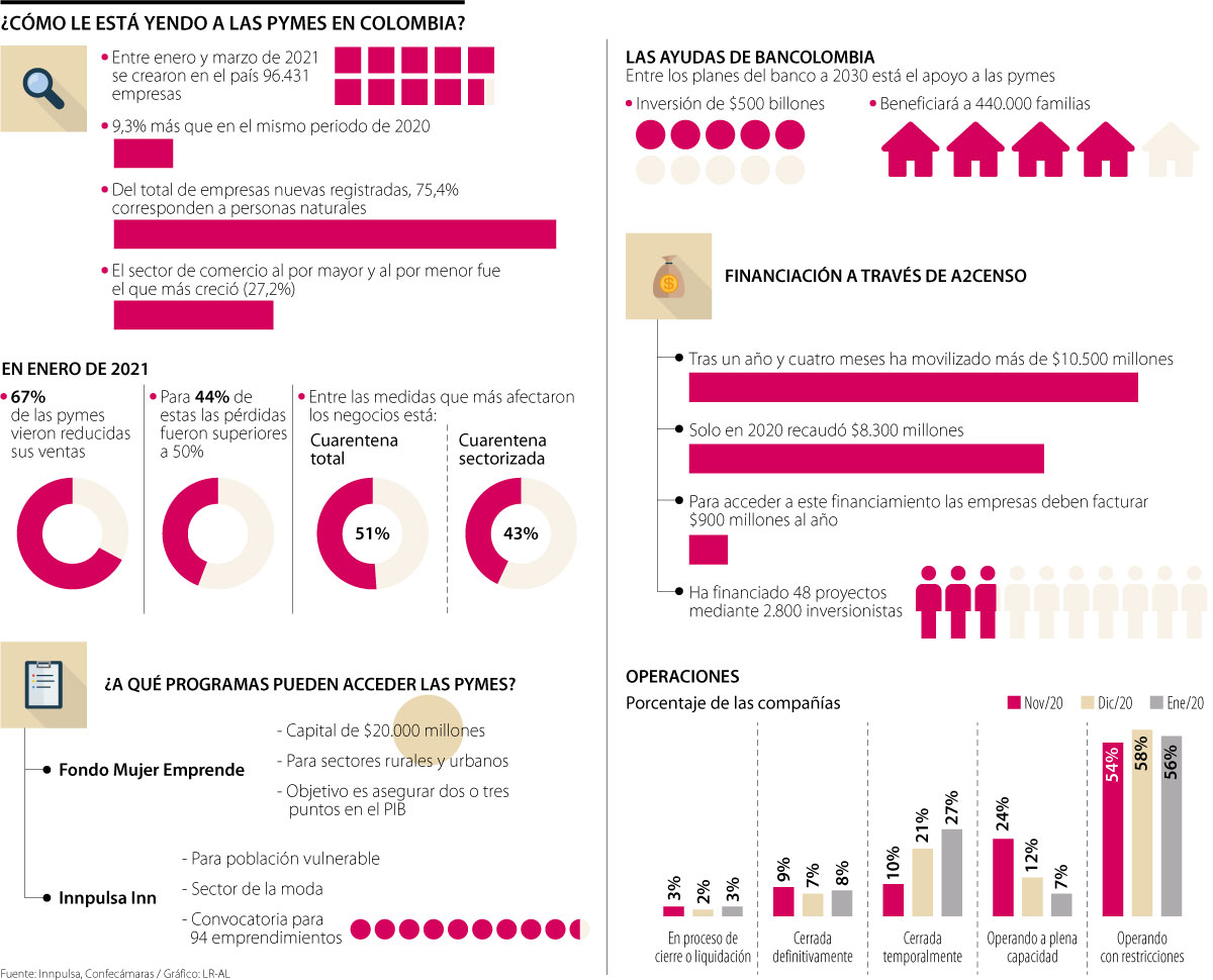 Esta iniciativa, indicaron desde Bancolombia, complementa la apuesta del banco por las Pyme, a las que recientemente destinó una línea de crédito por $13,5 billones para su recuperación, de la cual ya ha desembolsado en el primer mes más de $882.699 millones, impactando a más de 10.797 clientes de pequeñas y medianas empresas.