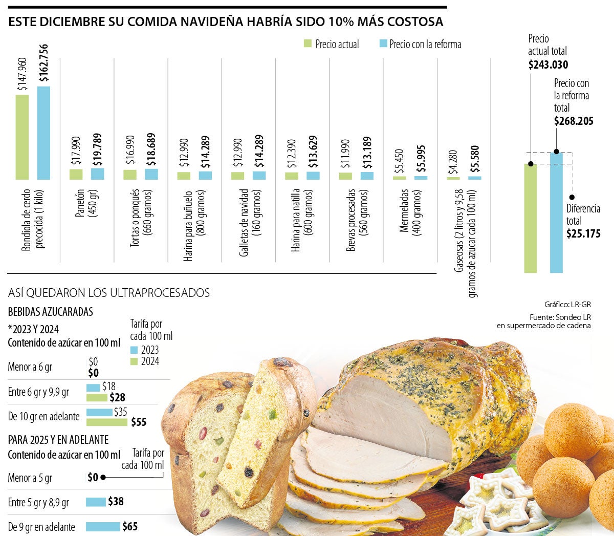 Con impuestos que van desde 10% sobre el valor de venta al público, y una tasa que dependerá de la concentración de azúcar por cada 100 mililitros en las bebidas azucaradas, es posible que su mercado navideño se encarezca hasta en $25.000 el próximo año.
