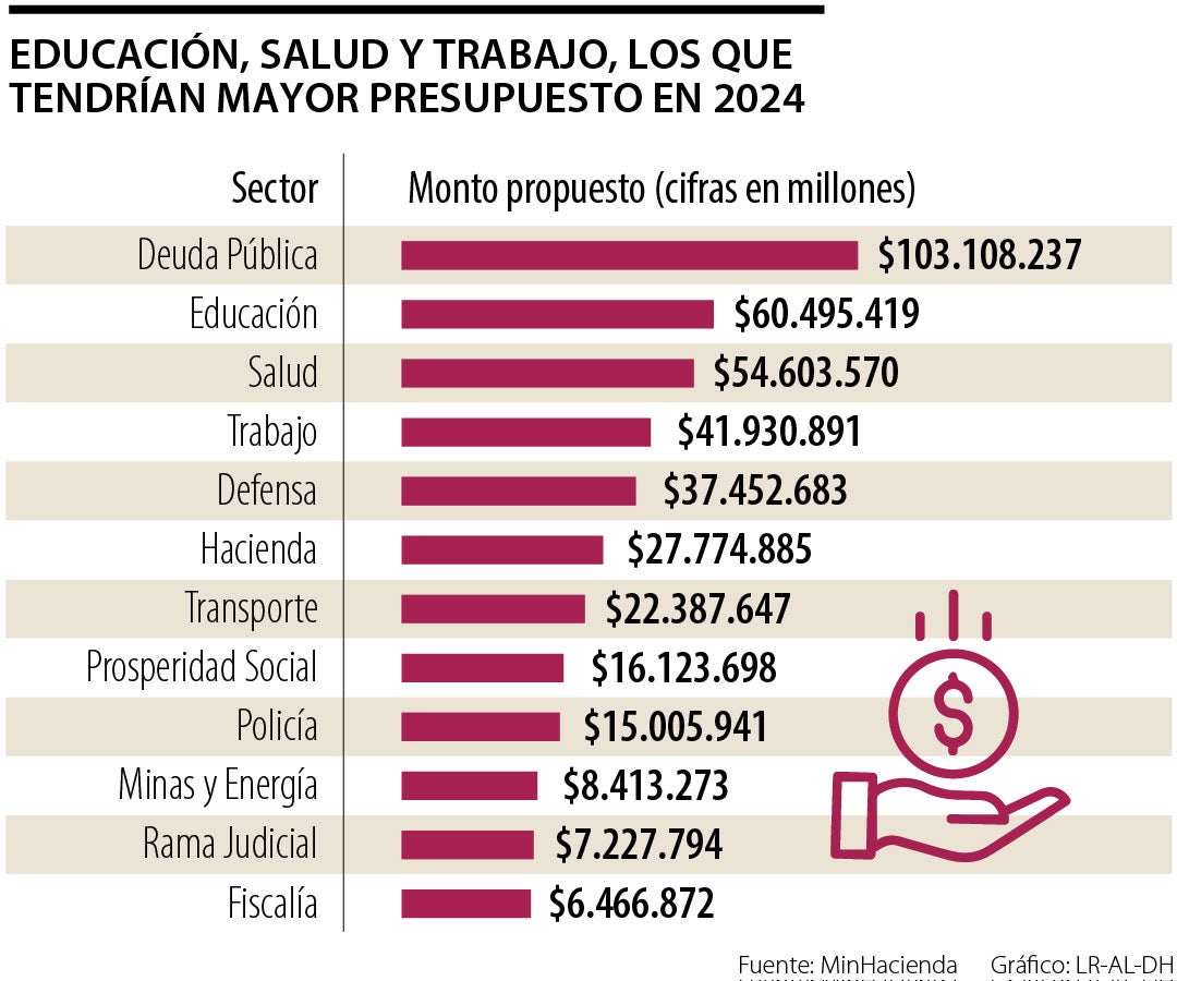 El primer presupuesto a cargo del gobierno del presidente Gustavo Petro ya se conoció, al menos en su etapa de anteproyecto. Si bien es posible que se apliquen cambios durante su discusión, y cuando se conozcan las versiones finales del Marco Fiscal de Mediano Plazo 2023, y la aprobación del Plan Nacional de Desarrollo, estos suelen ser mínimos. Para 2024, el PresupuestoGeneral de Nación (PGN) estima que el Gobierno Nacional gaste cerca $435 billones, una cifra histórica que significa un aumento de 7,2% frente a 2023, que fue de $405,6 billones.