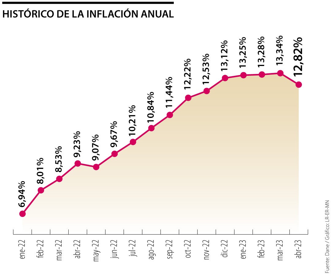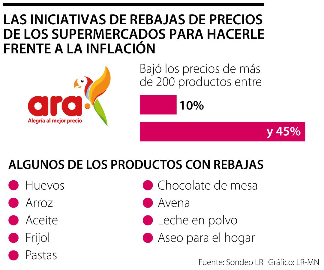 La guerra de precios que arrancó en los bancos, con la caída de las tasas de interés, ahora se traslada al sector comercio. Como en su momento fue Bancolombia, la primera empresa en anunciar una reducción de los precios fue Tiendas Ara, lo que generó un efecto dominó en este segmento. La cadena de ‘hard discount’ rebajó los precios de más de 200 productos, con un descuento de entre 10% y 45%. Acto seguido, el Grupo Éxito, Makro y Olímpica se sumaron a esta estrategia. En abril, la inflación se ubicó en 12,82%, es decir, 3,59 puntos porcentuales más que el mismo periodo del año anterior.