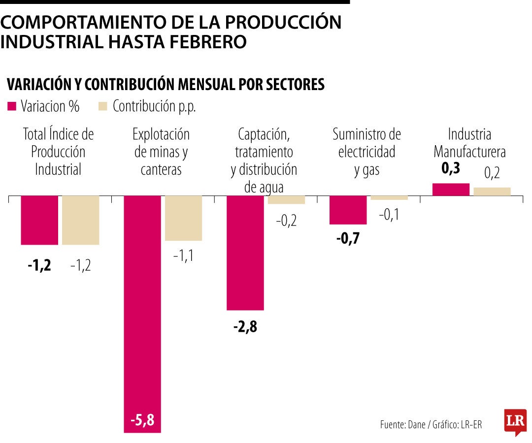 El Departamento Administrativo Nacional de Estadística, Dane, presentó el Índice de Producción Industrial con corte a febrero, destacando que la variación mensual fue de -1,2%, acumulando 23 meses en terreno negativo.