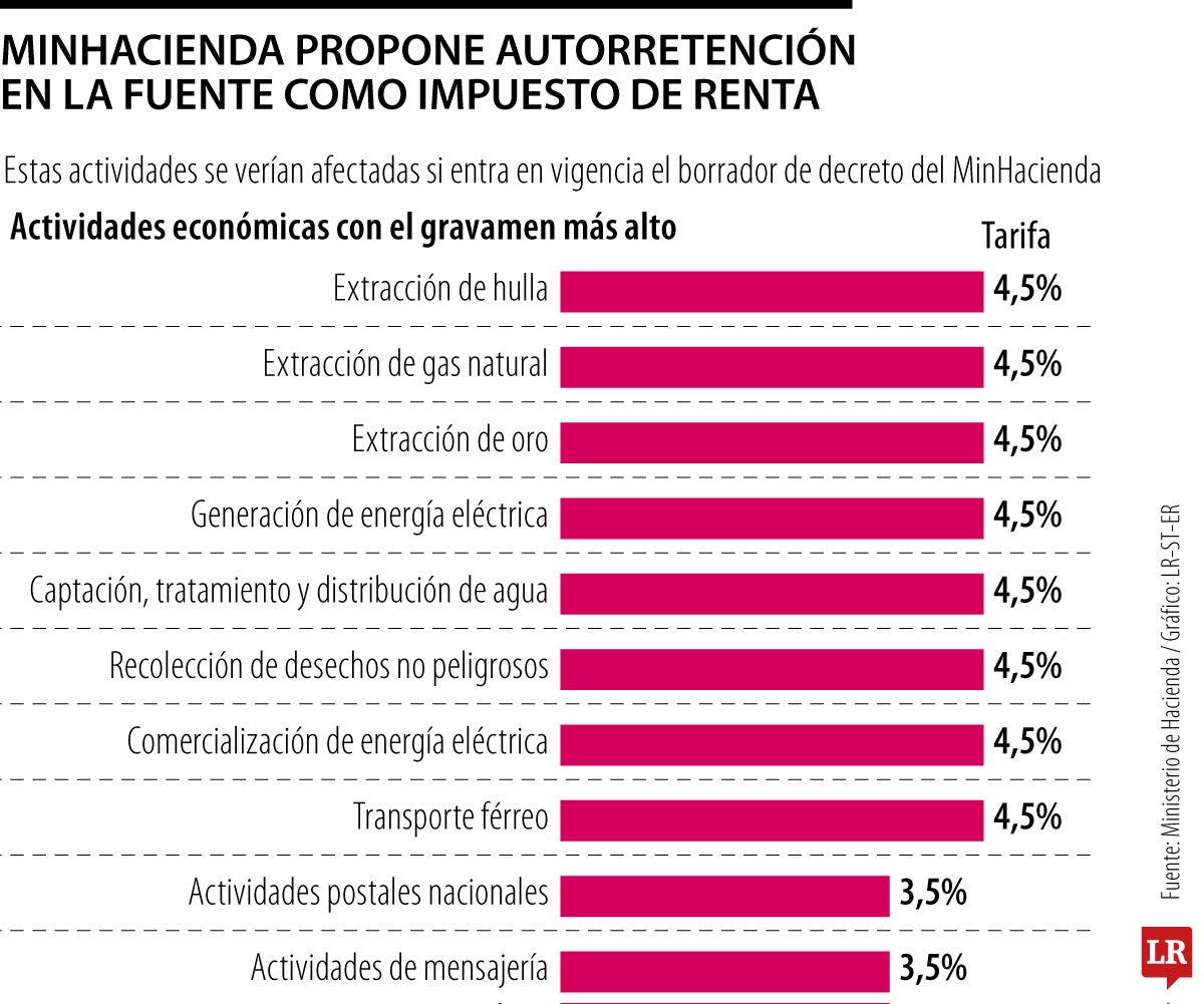 Sin embargo, analistas explican que quedaría abierta la posibilidad de tener un escenario de menor recaudo, lo que aumentaría las presiones fiscales. El proyecto busca modificar el Decreto 1625 de 2016, amparado en el artículo 365 del Estatuto Tributario que le permite al Gobierno expedir, vía decreto, el cobro de la retención en la fuente sobre las diferentes actividades económicas. Este decreto actualiza el que existe, y su vez lo vuelve más ‘gravoso’.