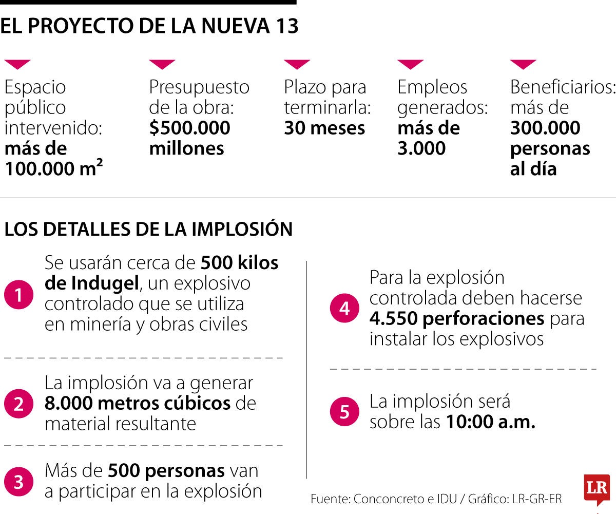En Bogotá, la intersección de la calle 13 con carrera 50 será el epicentro de una megaobra superior a $500.000 millones, que intervendrá más de 100.000 metros cuadrados de espacio público con el objetivo de mejorar la movilidad de más de 300.000 personas que transitan por la zona, ya sea en vehículos particulares o como usuarios del sistema TransMilenio. Para dar inicio a las obras, será necesario demoler los puentes que actualmente se encuentran en el lugar donde se levantará la nueva infraestructura.