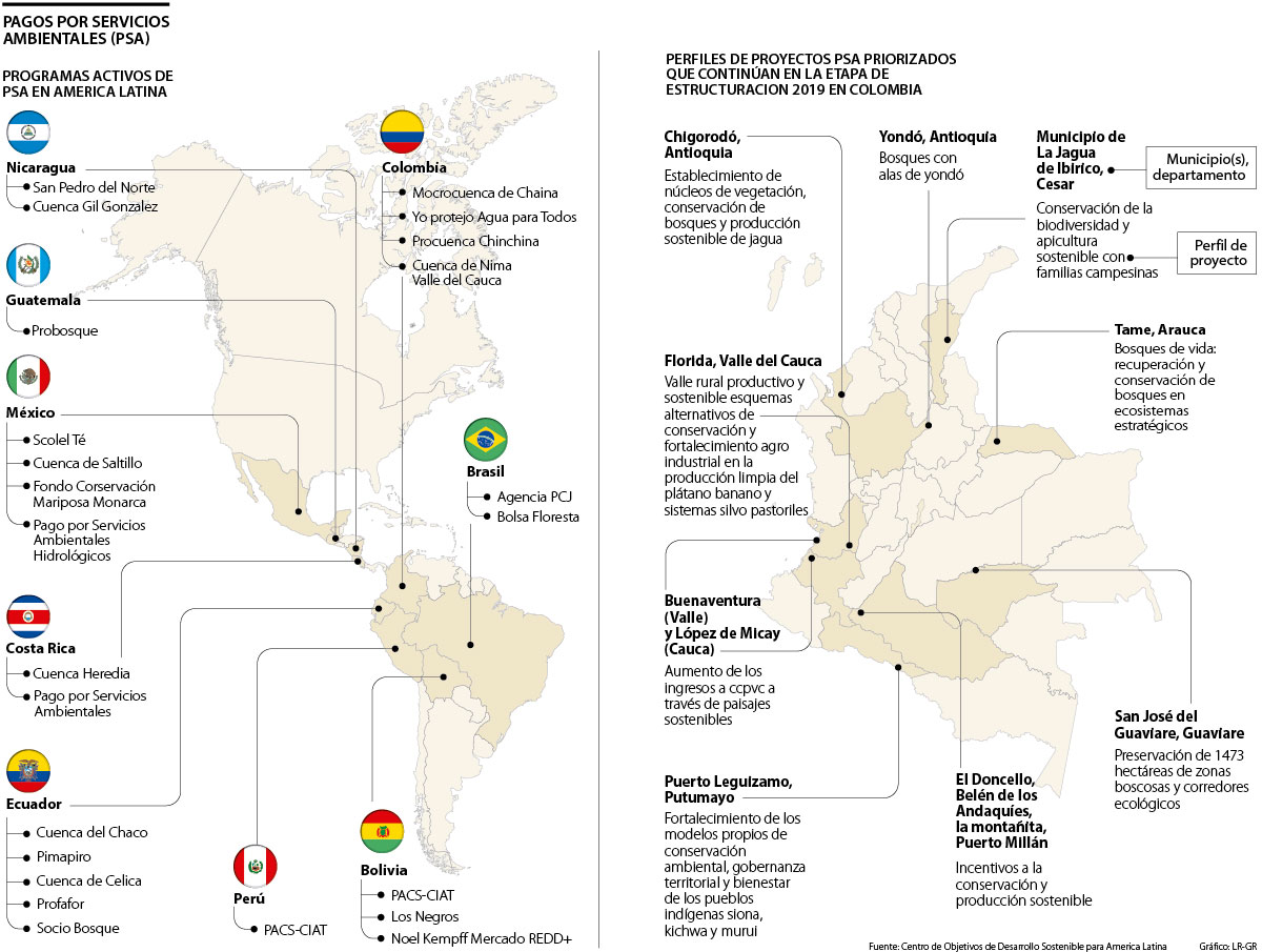 Latinoamérica fue pionera en establecer esquemas de PSA a gran escala, usualmente financiados u operados por sus gobiernos. Costa Rica, fue el primer país en el mundo en establecer un esquema nacional de PSA y junto con México son dos de los más grandes a nivel mundial sumando, en conjunto, casi cinco millones de hectáreas de bosque protegidos. Por otro lado, en la región existen diferentes formas en las que se conceptualizan los PSA.