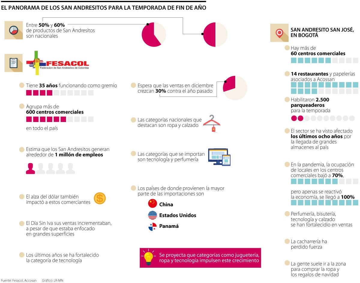 Cabe resaltar que en los San Andresitos se vende al por mayor y detal, lo que anticipa la temporada navideña, es decir, desde mediados de octubre los comerciantes están preparados para empezar a vender, pero los días más fuertes en ventas están en diciembre. Pese a la proyección de crecimiento, la inflación y el alza del dólar también es una preocupación del comercio informal.