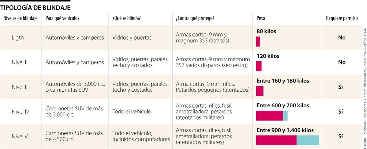 Un blindaje nivel II está valiendo alrededor de $35 millones y el proceso puede durar entre un mes y mes y medio, dependiendo de las características.