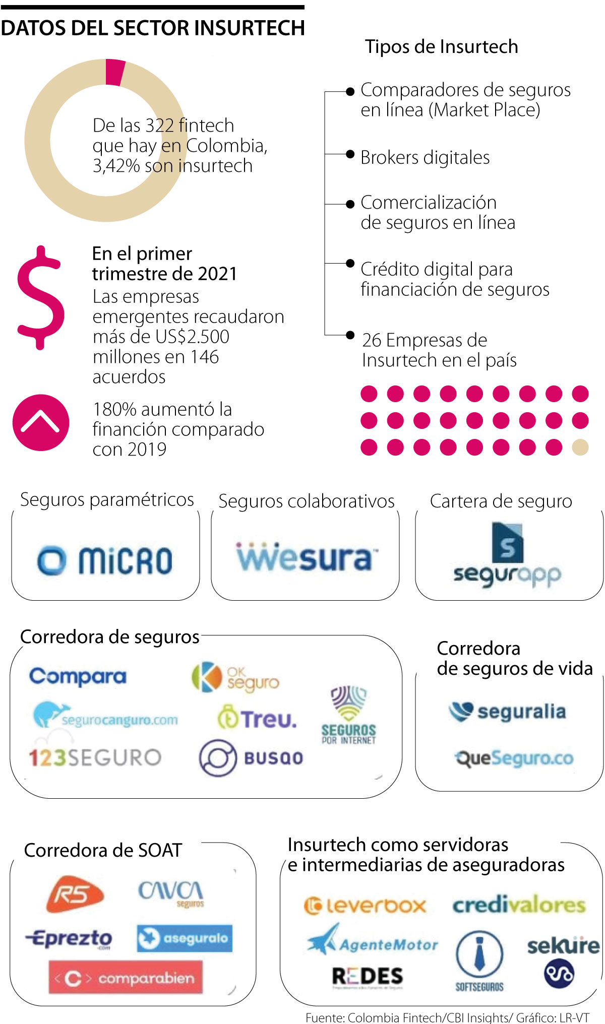 Empresas como Wesura, Segurapp, Compara, Ok Seguro, Credivalores y O Micro son las que integran el grupo de las 26 insurtech creadas en Colombia a la fecha (ver gráfico).