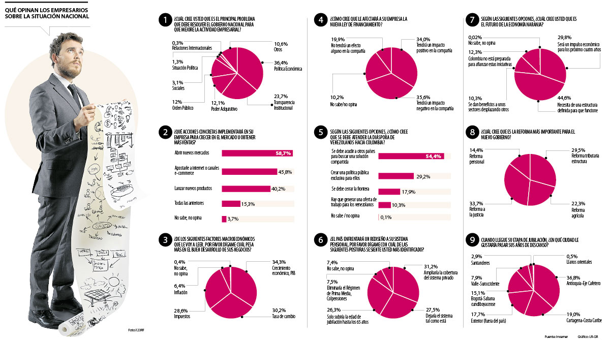 Conocer la opinión de los empresarios siempre será un determinante sobre el comportamiento de la economía nacional. Año tras año, La República realiza a través de Invamer una encuesta con 200 empresarios de todo el país, con el fin de conocer su opinión sobre la situación económica y las expectativas de crecimiento.