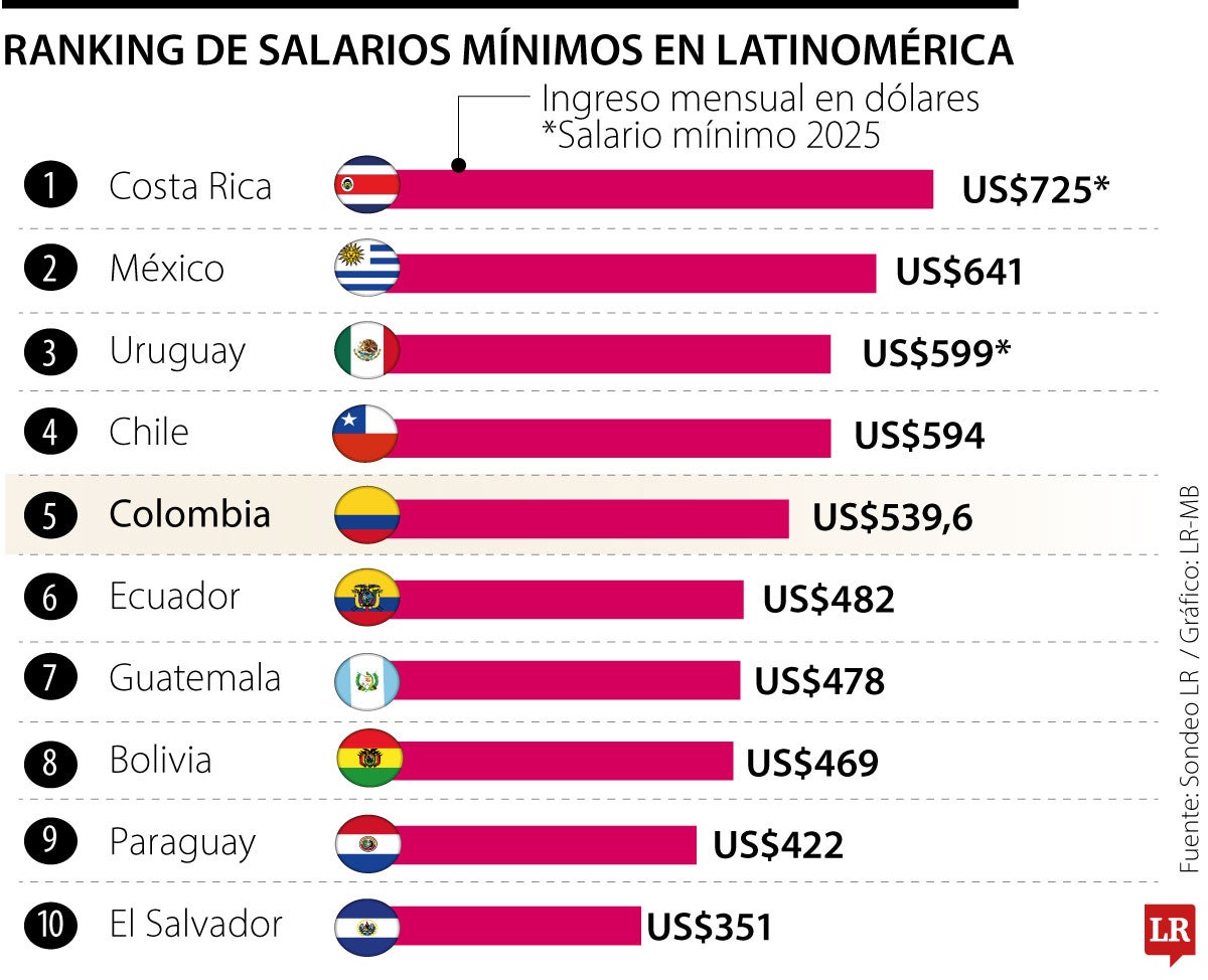 Colombia tiene la quinta remuneración base más alta de la región