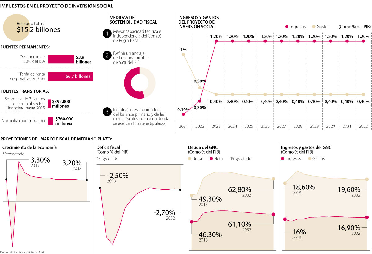 El recaudo esperado de esta nueva propuesta es de $15,2 billones, con los que se le dará continuidad a programas sociales, como Ingreso Solidario y el Paef, y se empezarán a poner en orden las finanzas de la Nación, especialmente, luego de un año en el que fue necesario implementar una política pública expansionista por la pandemia.