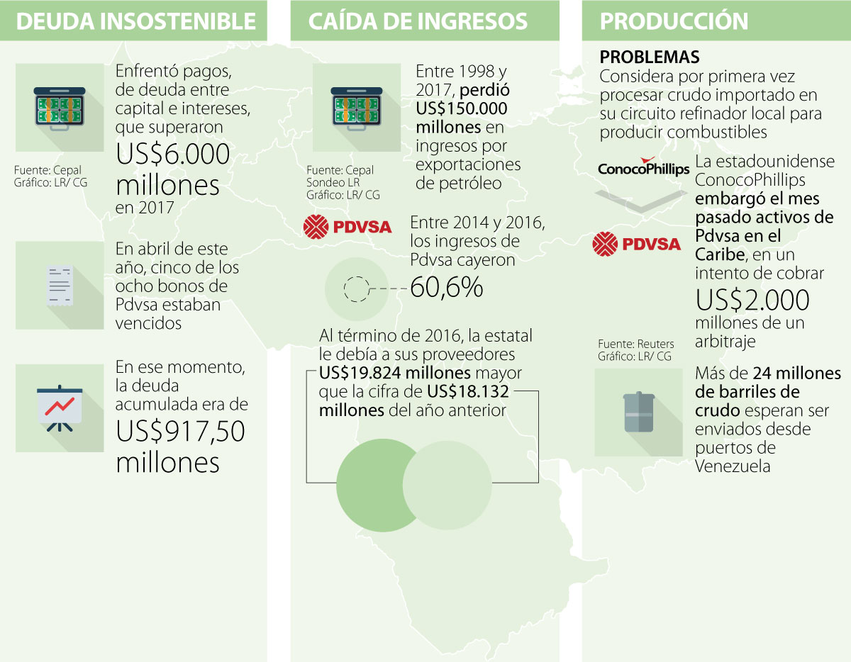 El académico expresó que “el chavismo ubicó a la producción de petróleo en un modelo de una suerte de utopía, que claramente no se sostiene ni en la teoría ni en la práctica”, por lo que deben darse cambios en la estrategia empresarial. La petrolera también enfrenta un alto servicio de deuda, con bonos vencidos y que la obligaron a realizar pagos, entre capital e intereses, que superaron US$6.000 millones el año pasado.