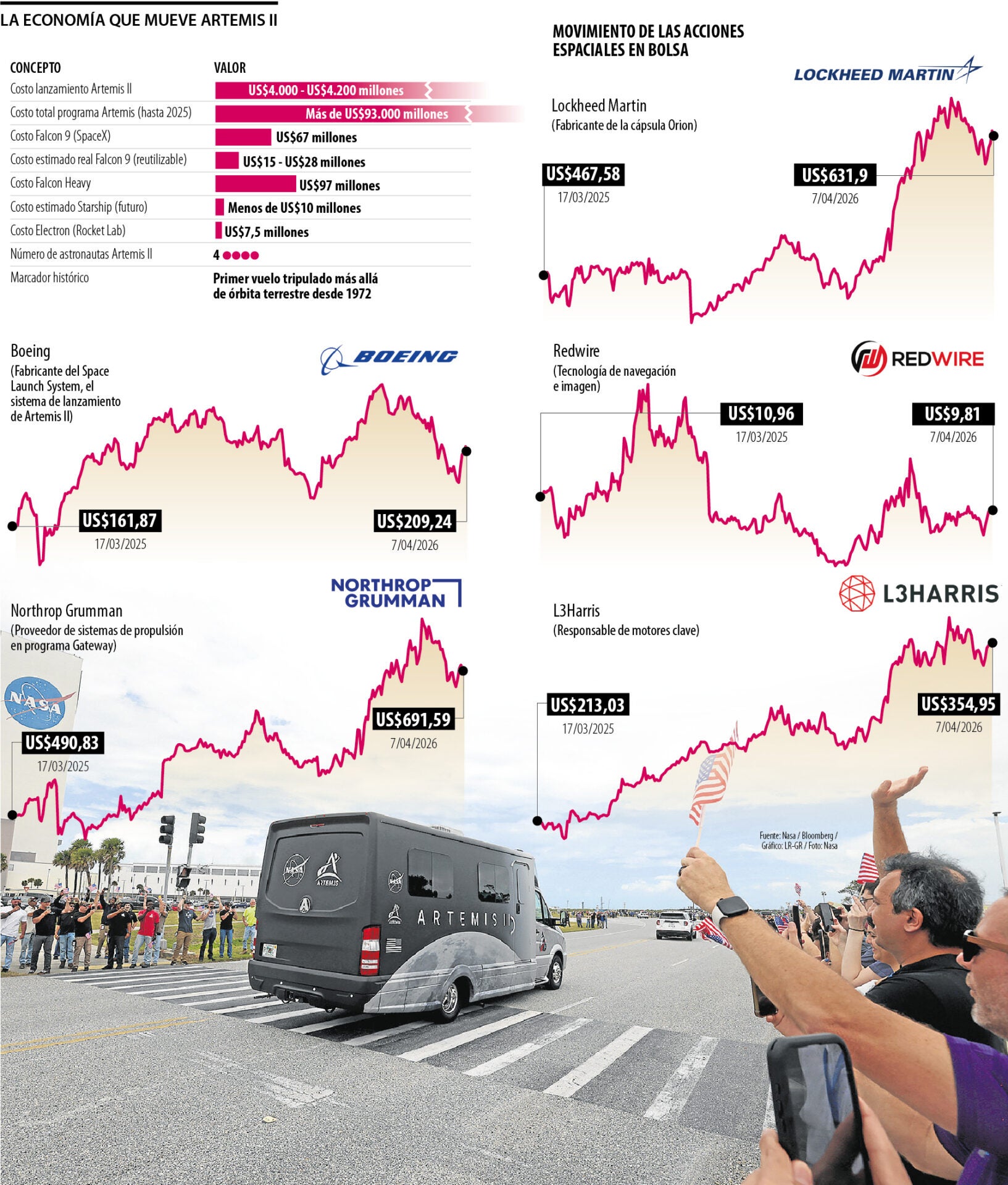 La nueva carrera hacia la Luna ya no se mide únicamente en logros científicos, sino también en contratos, inversión de capital y oportunidades de negocio que están redefiniendo la industria espacial global. La factura de volver a la Luna es contundente y marca el tono de esta nueva etapa: el viaje de Artemis II forma parte de un programa que supera los US$93.000 millones hasta 2025, según cifras de la Nasa.