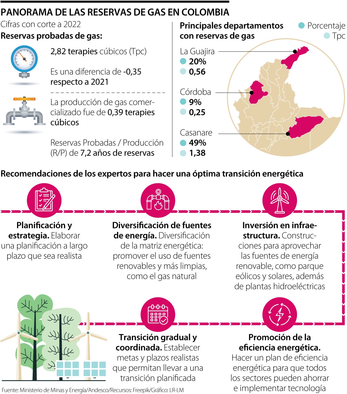 Por ejemplo, las reservas probadas de gas natural disminuyeron de 8 años a 7,2 años con corte a 2022. Simancas asegura que el Gobierno indicó que no se suscribirán nuevos contratos de exploración y explotación de hidrocarburos, “lo cual genera incertidumbre en el mediano y largo plazo, a menos que con la exploración en curso se logren hallazgos significativos”. Agregó que la integración del gas natural en la transición es un pilar importante: su uso reduce las emisiones y garantiza el suministro del servicio público, además de ser un respaldo para la electricidad en condiciones críticas.