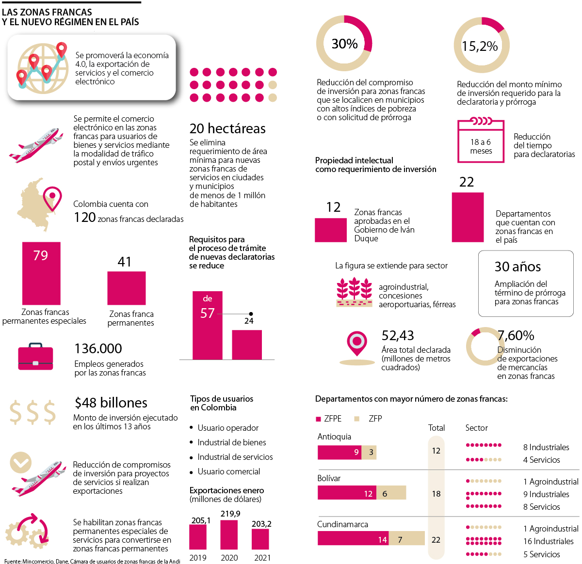 El Ministerio de Comercio Industria y Turismo, liderado por José Manuel Restrepo, anunció hace unos días el nuevo Decreto de zonas francas en Colombia, el cual trajo consigo aspectos como la reducción y la simplificación de trámites hasta en 42% y la disminución en el monto mínimo de inversión requerida para declaratoria y prórroga de 15,2%.