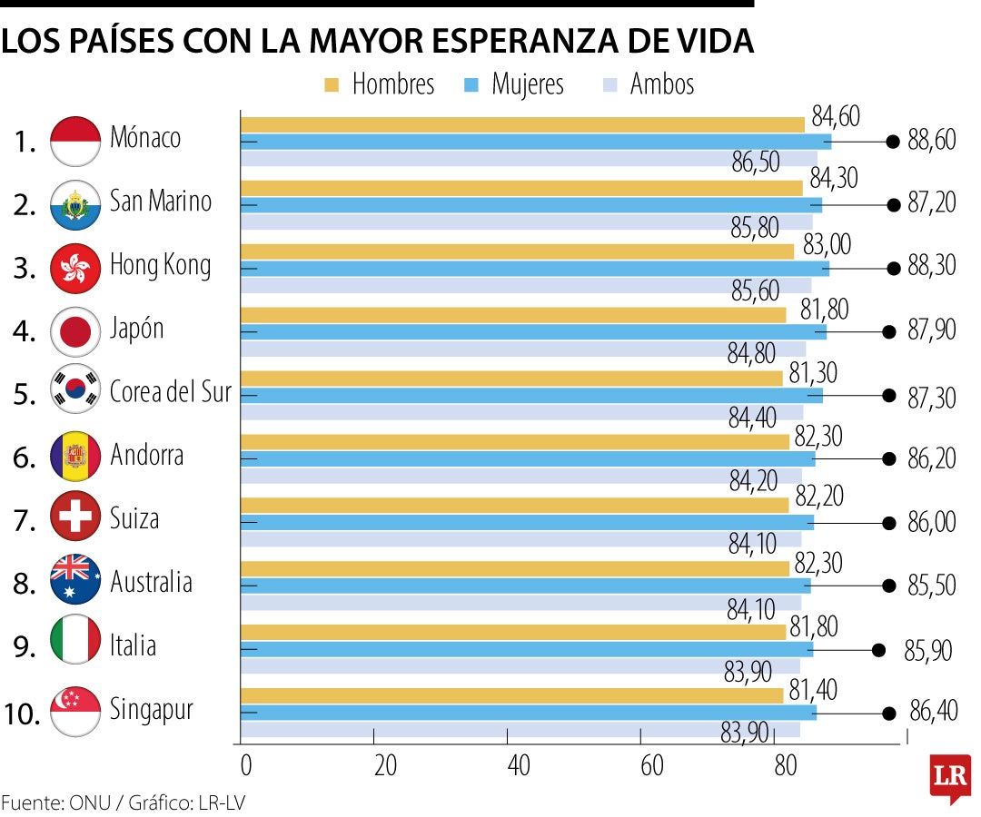 En esos países asiáticos, las mujeres tienen una esperanza de vida de 87 años; en Francia y Suiza, la esperanza es de 86 años
