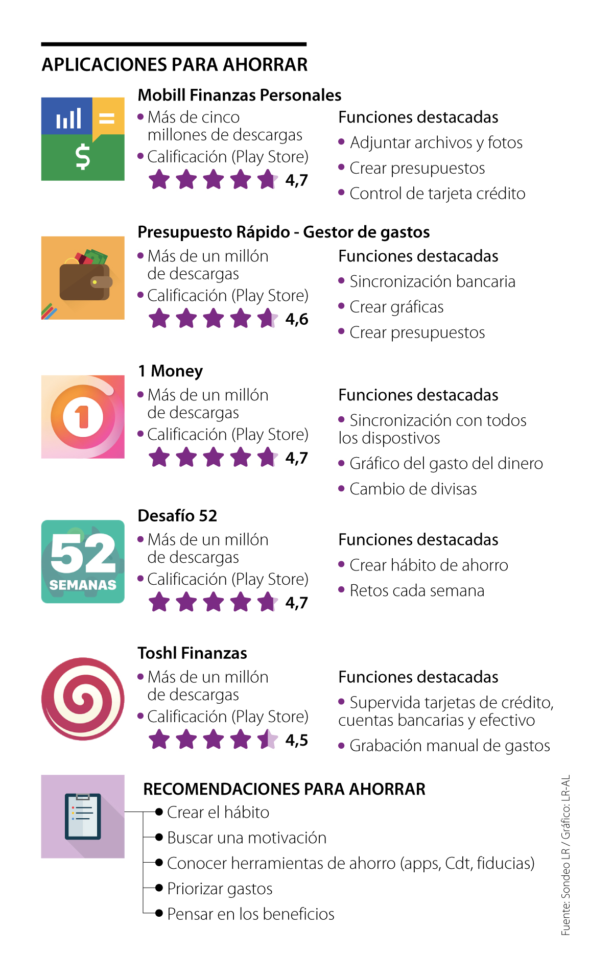 Otra aplicación que lo puede ayudar a controlar sus gastos es ‘Presupuesto Rápido’, que genera gráficas que le permiten ver de manera didáctica el uso de sus recursos. Igualmente, Toshl Finanzas, que hace un resumen general del flujo de dinero mensual, así como la creación de presupuestos para distintos objetivos.