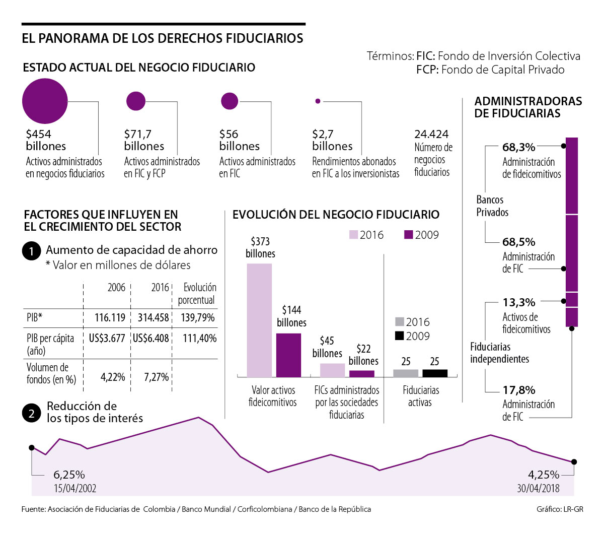Según la Asociación de Fiduciarias de Colombia (Asofiduciarias), existen 24.424 negocios fiduciarios, lo que ha confirmado la tendencia de crecimiento de este sector y las oportunidades para los inversionistas.