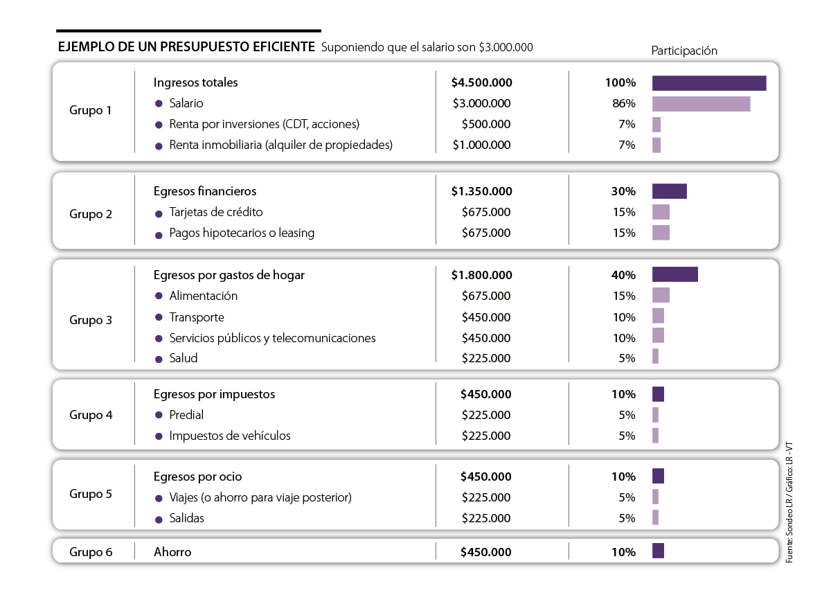 Darle un porcentaje a cada egreso que tiene mes a mes hará que tenga claridad sobre su dinero, y le permitirá guardar recursos
