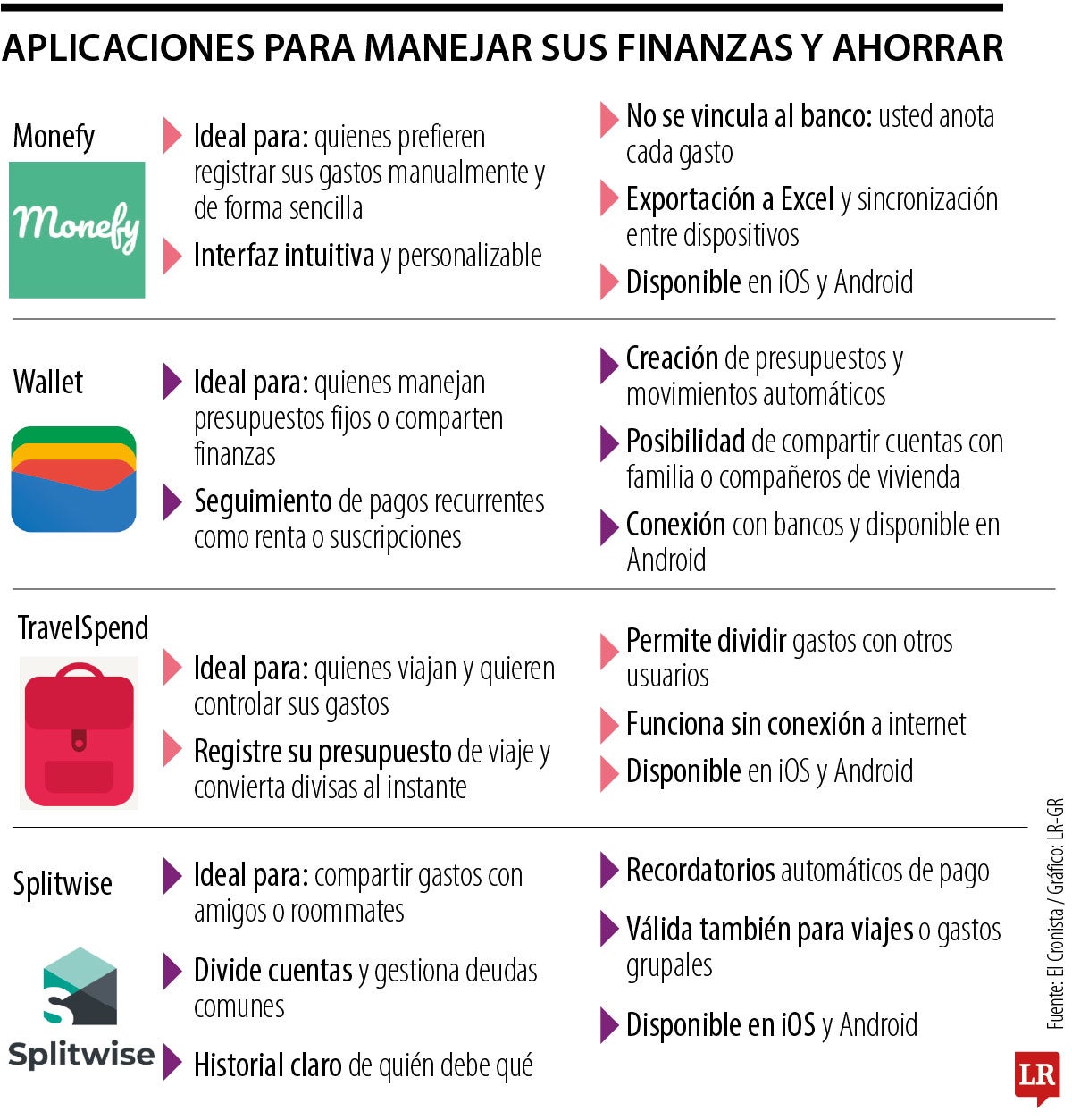 Entre las recomendaciones está Monefy, Wallet, Splitwise y TravelSpend, disponibles para todos los sistemas operativos de smartphone