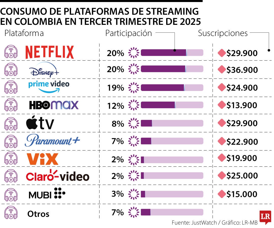 En el caso de Netflix, el referente del mercado, el costo mensual para el plan estándar en Colombia es de $29.900. Es importante notar que esta plataforma es la única de las grandes que no ofrece descuentos por pago anual, lo que obliga al usuario a un desembolso constante mes a mes que suma casi $360.000 al año por un solo servicio. Por su parte, Prime Video mantiene una tarifa de $24.900 mensuales, Disney+ tiene su plan estándar por $36.900 al mes, HBO Max sus planes parten desde los $13.900, con anuncios y por último Apple TV+ se sitúa en un rango de $29.900 mensuales.