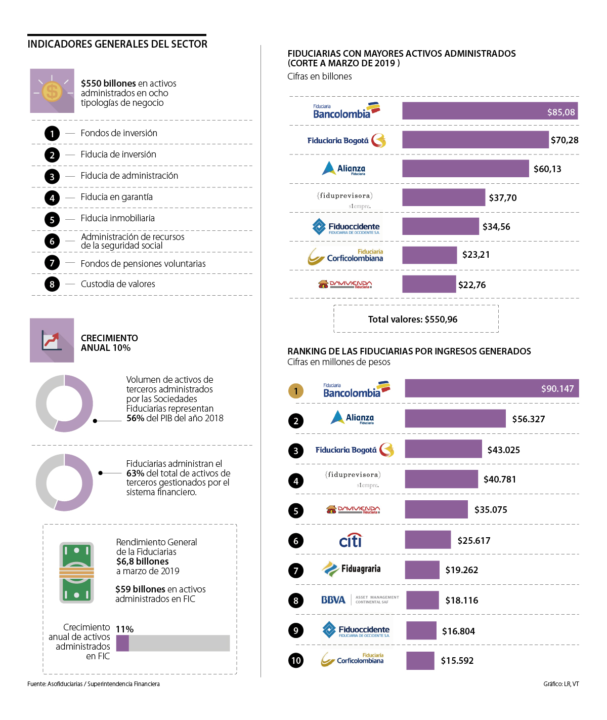 Fiduciaria Bancolombia, Fiduciaria Bogotá, Alianza Fiduciaria, Fiduprevisora y Fiduciaria de Occidente son las que manejaron mayor cantidad de activos hasta marzo
