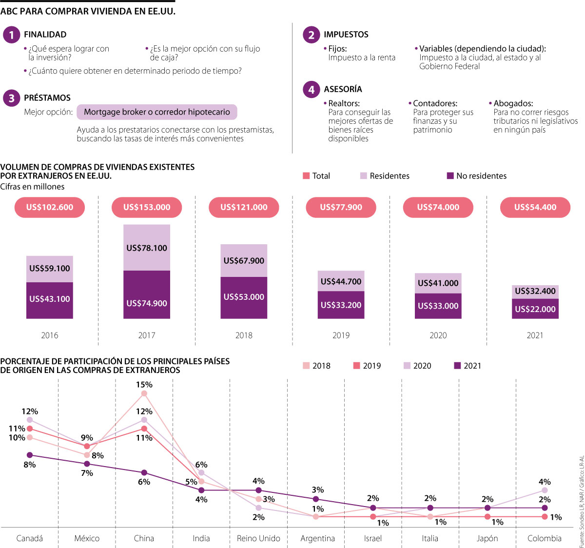 Según un estudio de National Association of Realtors (NAR), Colombia ocupó el puesto 10 entre los países con mayores extranjeros que compraron casas este año. En 2020 tuvo la quinta posición, con US$1.300 millones invertidos entre abril de 2019 y marzo del año pasado.