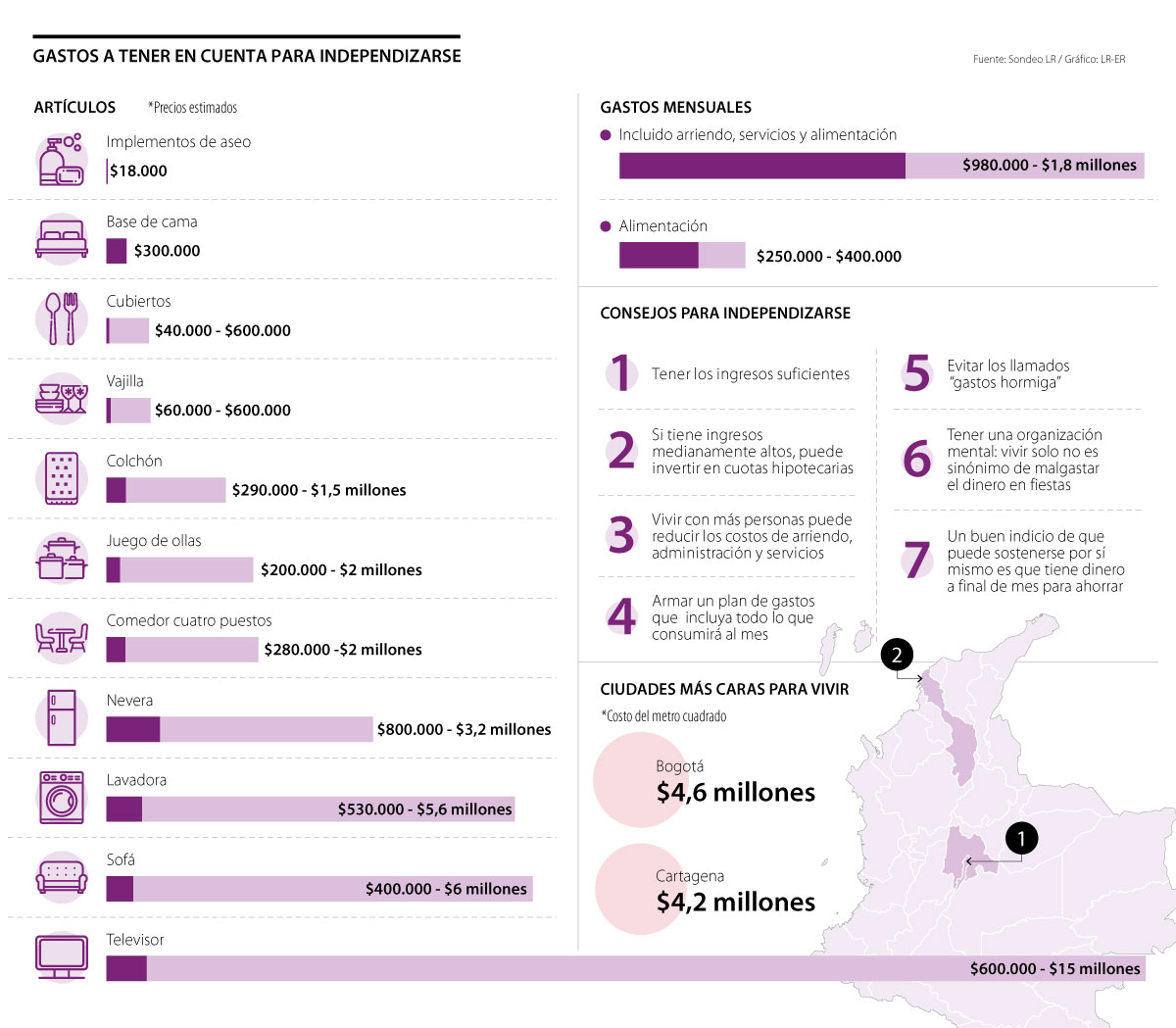 Además de los gastos fijos como arriendo y alimentación existen unos iniciales: electrodomésticos e implementos básicos para vivir