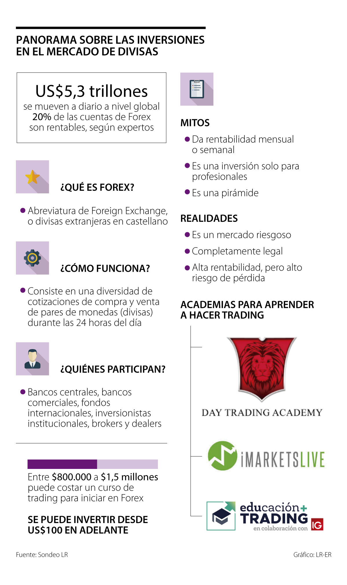 Comprar y vender acciones o invertir en criptomonedas no son quizás las únicas formas de participar en el mercado financiero. Con el desarrollo de las plataformas digitales y la consolidación del ‘blockchain’ a nivel mundial, una de las alternativas que ha tomado fuerza en los últimos años es Forex, un mercado electrónico de intercambio de divisas el cual opera las 24 horas del día y es muy promocionado en internet. Le presentamos algunos mitos y realidades de esta plataforma.