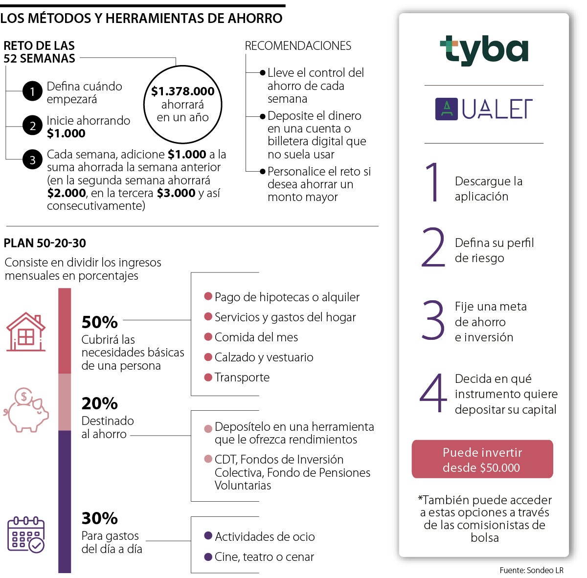 Uno de los aspectos que debe tener en cuenta para cuidar su bolsillo es definir qué porcentaje de sus ingresos va a destinar a este propósito. Para iniciar puede emplear la regla 50-20-30, un método enfocado en destinar cierto porcentaje de sus ingresos a rubros específicos.