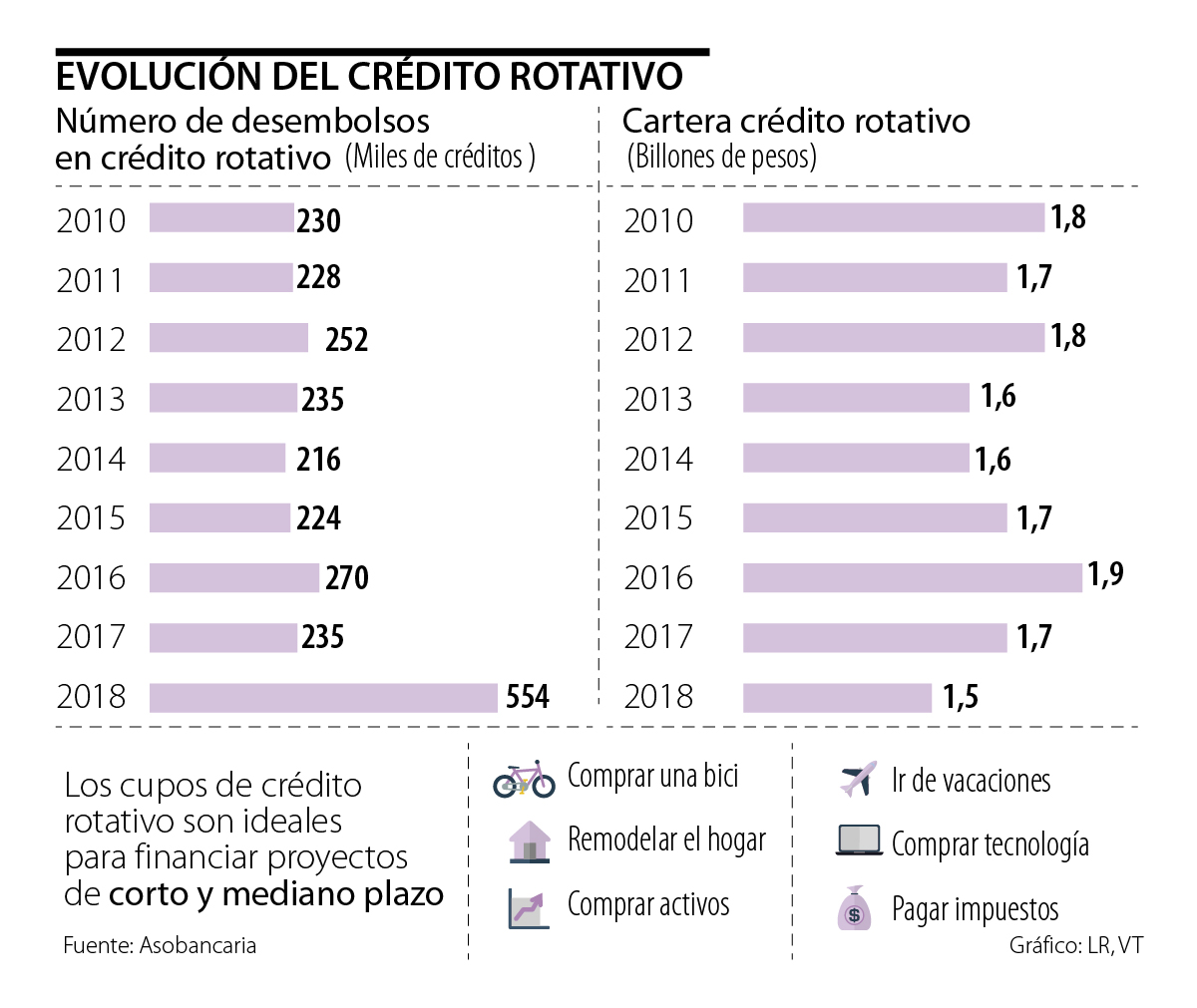 De acuerdo con Scotiabank Colpatria, el crédito rotativo es ideal para aprovechar oportunidades de negocio o inversión, remodelar la casa, comprar tecnología, invertir en educación, consolidar deudas con excelentes tasas de interés, viajes, eventos especiales, muebles, entre otros. Según Carolina Orduz, gerente de productos activos de Bbva, “un crédito rotativo es de libre destinación, le permite al cliente disponer de los recursos, total o parcialmente cuando lo necesite. Además, a medida que realiza los pagos, libera cupo que puede volver a utilizar”.
