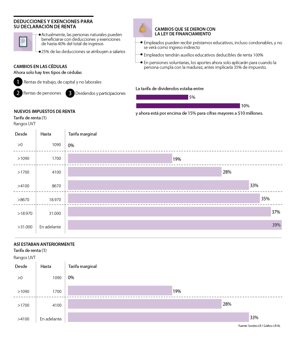 La Ley de financiamiento de 2018 y la reforma tributaria de 2016 modificaron las deducciones y exenciones que se recibían al declarar renta anteriormente