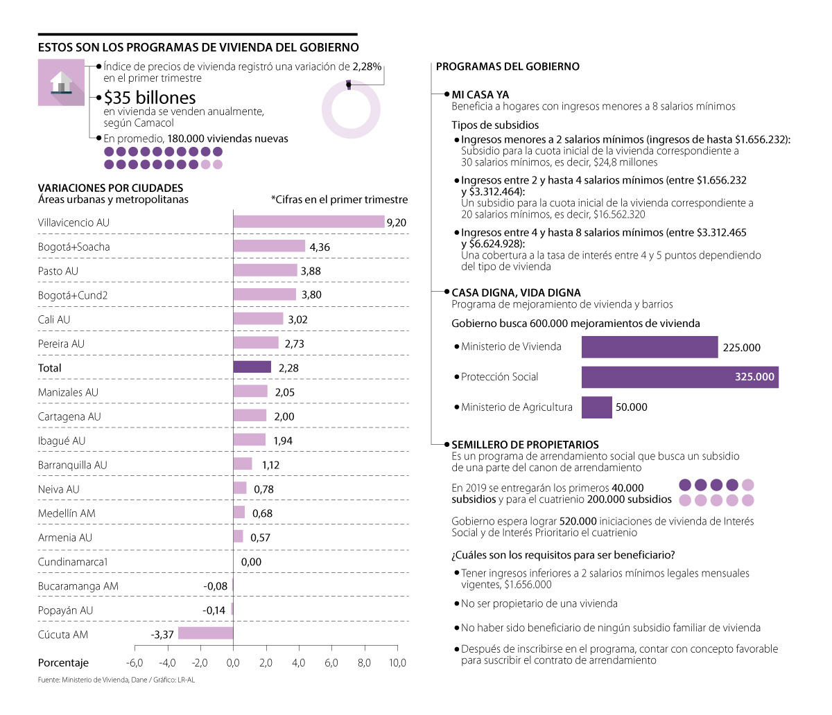 El programa Mi Casa Ya es, sin duda, la bandera insignia del Gobierno Nacional en materia de vivienda. Esta iniciativa busca beneficiar a los hogares que tengan ingresos menores a 8 salarios mínimos (hasta $6,6 millones). Según el Minvivienda, este año se otorgarán en total 62.000 subsidios a través del programa, 32.000 para la cuota inicial y la tasa de interés, y 30.000 destinados solo a la tasa de interés. De esta forma, los hogares podrán comprar la vivienda nueva urbana que deseen, cuyo valor no exceda los 135 salarios mínimos ($111,7 millones).