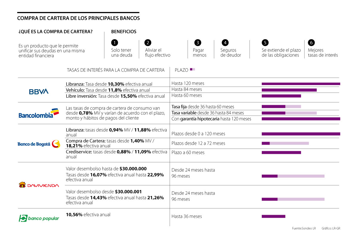 En el mercado existen múltiples opciones de este tipo, y por ello LR hizo un sondeo con varios de los principales bancos y le cuenta sobre las condiciones que estos ofrecen para la compra de cartera.