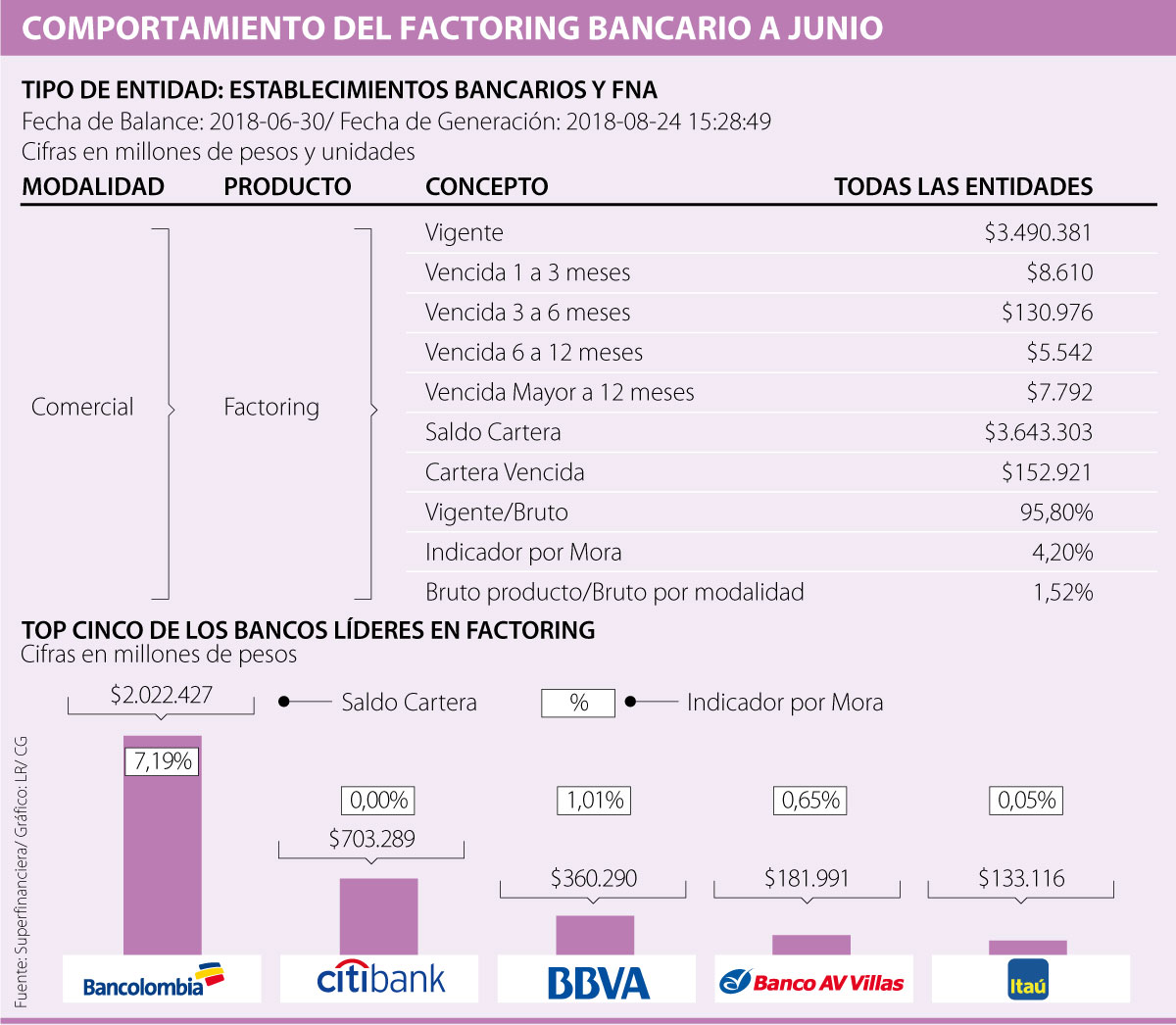 Por otro lado los bancos lograron mover hasta el mes de junio más de $3 billones, por medio del factoring y dentro de los líderes se encuentran Bancolombia, con más de $1,8 billones, y Citibank, con más de $700.000 millones.