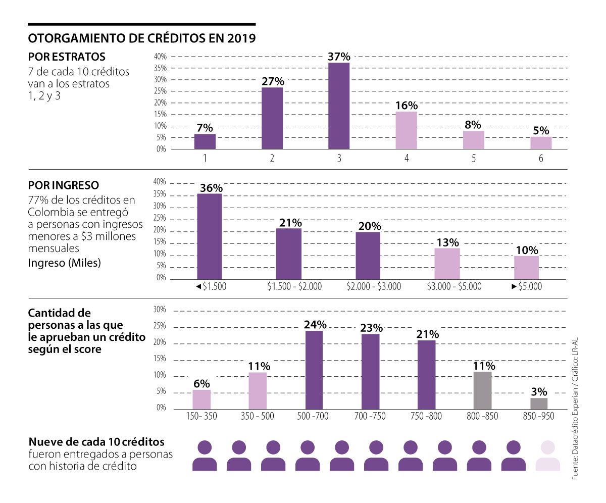 De ese porcentaje al que se le dieron créditos, 36% tiene ingresos de menos de $1,5 millones al mes, 21% gana entre $1,5 millones y $2 millones mensuales, y 20% recibe de $2 millones a $3 millones mensualmente.
