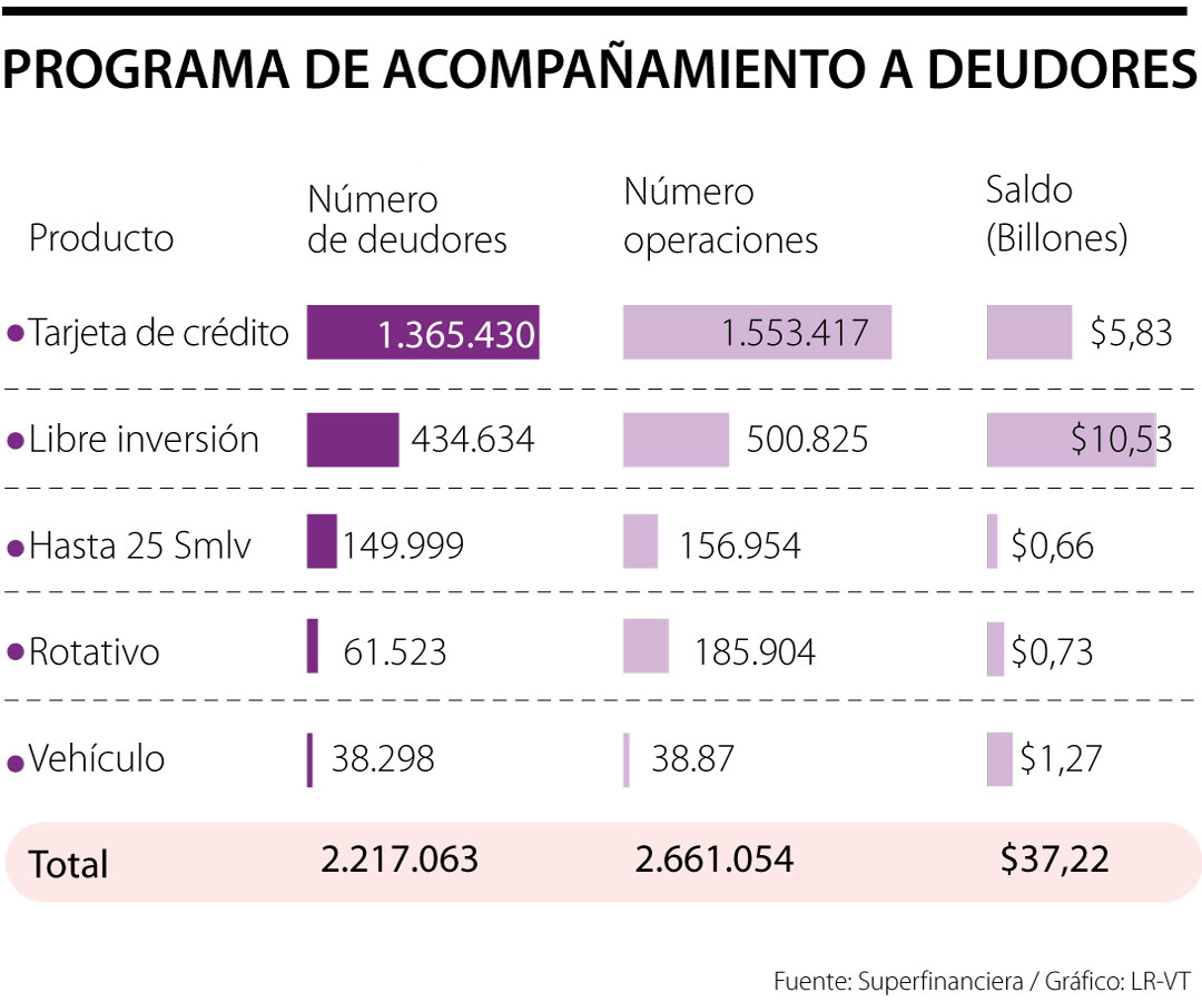 Los resultados del programa, que completó su décimo cuarto mes, evidenciaron que la mayor cantidad de deudores estuvo concentrada en las tarjetas de crédito, con 1,3 millones de morosos y $5,83 billones en obligaciones.