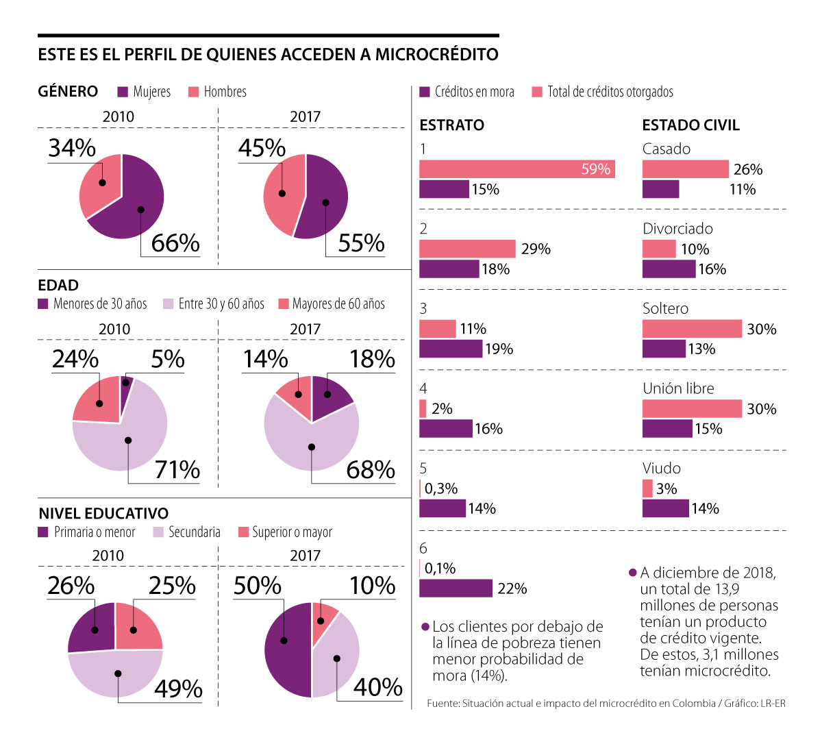 “Sin embargo, por lo general, los mayores demandantes de microcrédito tienen entre 30 y 60 años de edad. En 2010 eran 71% de la muestra, y en 2017 bajaron a 68%”, mencionó Estrada, quien también es presidente de Finagro.