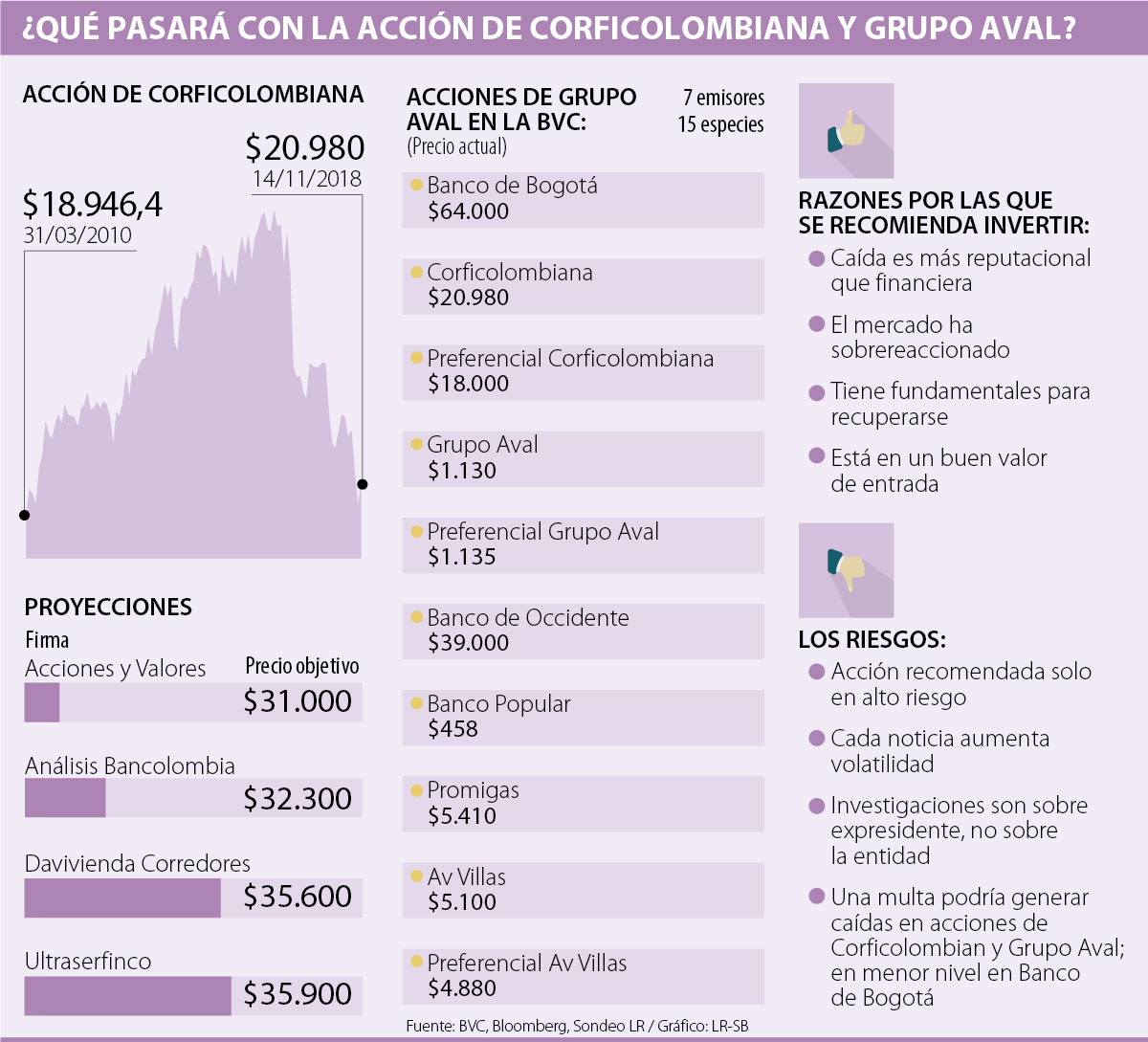 El respaldo es inminente. Corficolombiana es parte del Grupo Aval y filial del Banco de Bogotá; sin embargo, las acciones del grupo, que cuenta con siete emisores y 15 especies en bolsa, también están en cayendo.