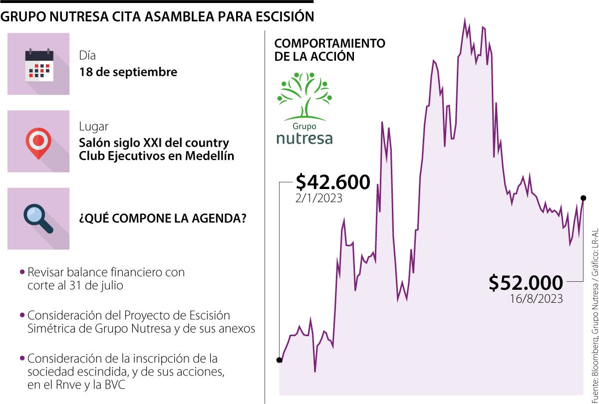 En ese momento se había establecido que se debía elaborar un balance financiero con corte al 31 de julio de 2023, el cual se discutiría el mismo día que se decida sobre la escisión, tal como ocurrirá, según la convocatoria de Nutresa.