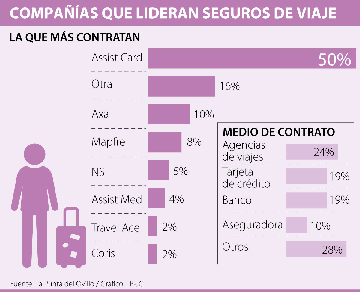 En una encuesta realizada por la firma de investigación y estrategia La Punta del Ovillo, se revela que solo 10% de los preguntados señaló dirigirse directamente a su compañía de seguros para adquirir uno de estos productos para viaje; mientras que 19% señaló ir a un banco; misma cifra para los que lo hacen por medio de su tarjeta de crédito. Las agencias de viaje son las principales vendedoras de este tipo de aseguramiento, con preferencia por 24% de los encuestados (ver gráfico).