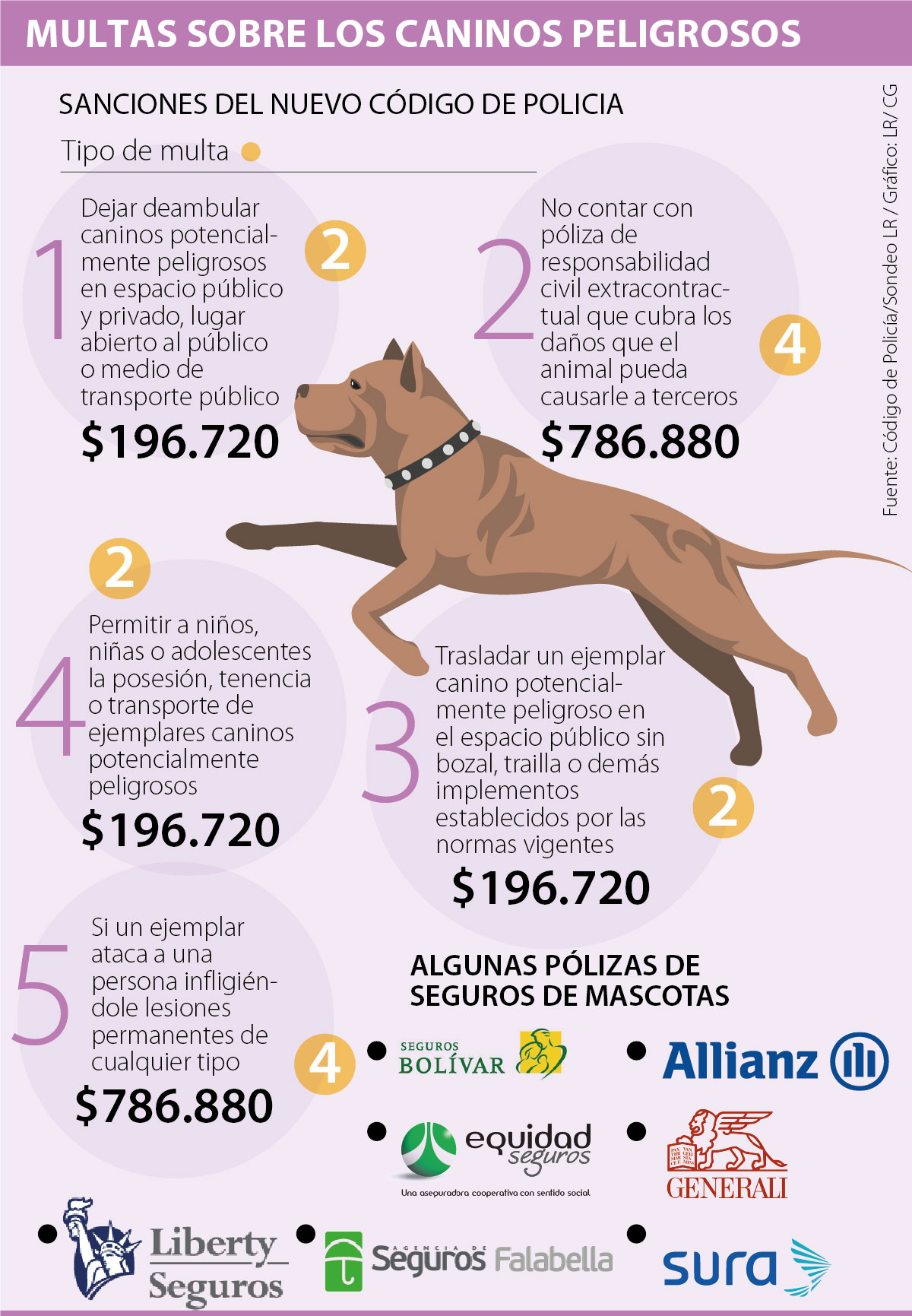 Y es que si bien han pasado seis meses desde que se estableció esta norma, que en un principio consistió en comparendos pedagógicos, aún no se encuentra reglamentada por parte del Gobierno, por lo que según Fasecolda, el gremio que reúne a las aseguradoras, las autoridades no podrán imponer a los propietarios de los caninos la multa de 32 salarios mínimos legales vigentes (Smlv), es decir, de un valor de $786.898.
