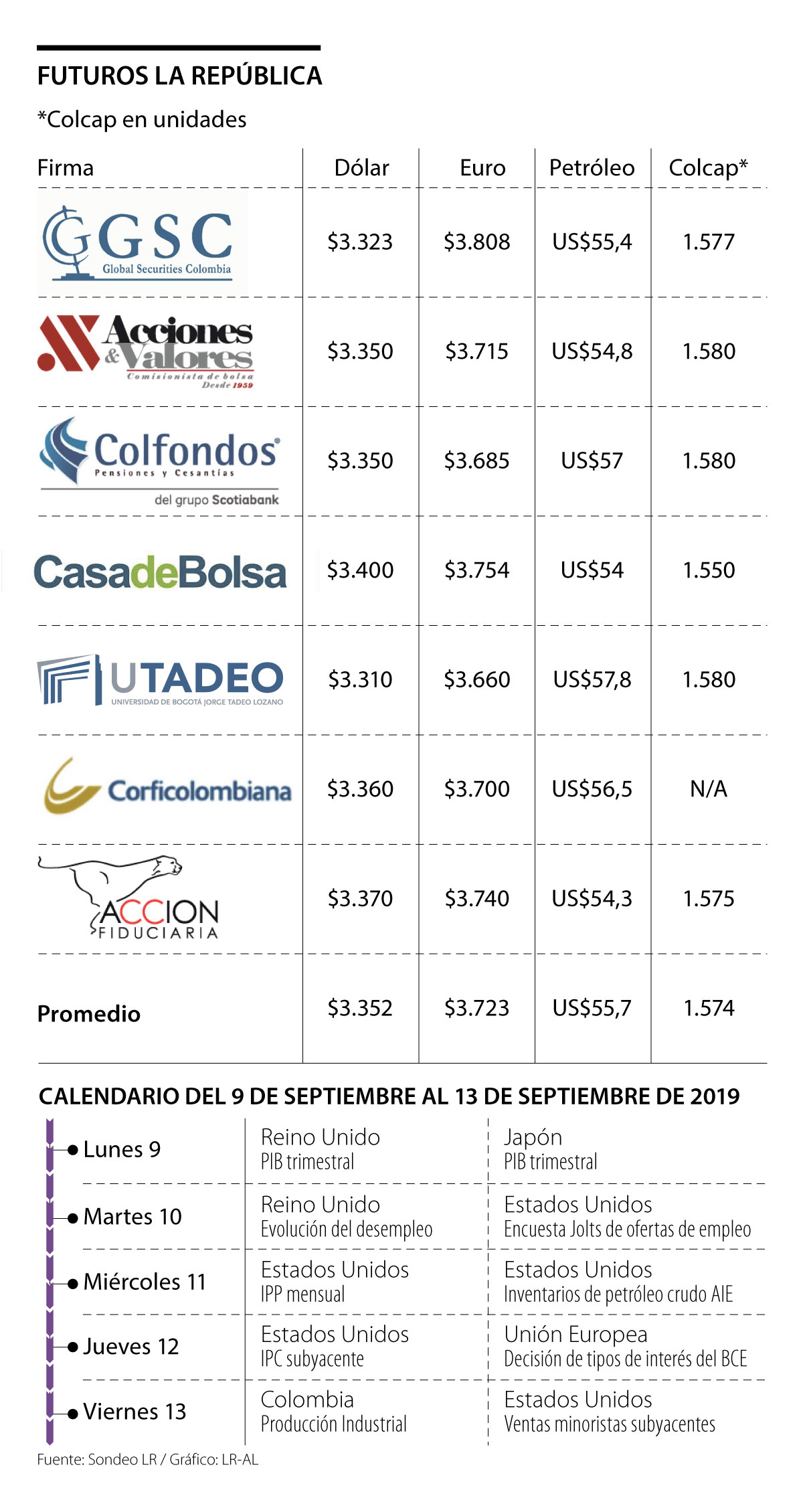 Juliana Pinzón Tróchez, analista económico de inversiones de Colfondos, señaló que los eventos más relevantes de la semana pasada fueron el avance en las negociaciones comerciales entre Estados Unidos y China, y los datos del empleo en la economía estadounidense, que se frenó más de lo previsto en agosto, pero se registraron fuertes alzas en los salarios, lo que debería apoyar el gasto del consumidor y la expansión de la economía.