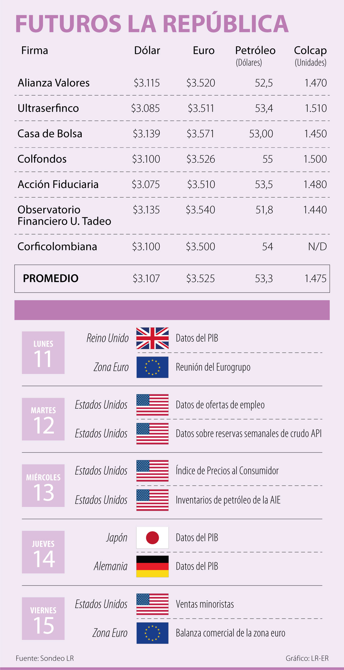 Pero con un panorama de mercados en calma, analistas como Daniel Lombana, de Acción Fiduciaria, consideran que el petróleo WTI podría establecerse cerca de US$53 favorecido además por las sanciones de Estados Unidos al petróleo venezolano. Sobre la bolsa local, los analistas prevén que el Colcap se estacione sobre 1.475 puntos.