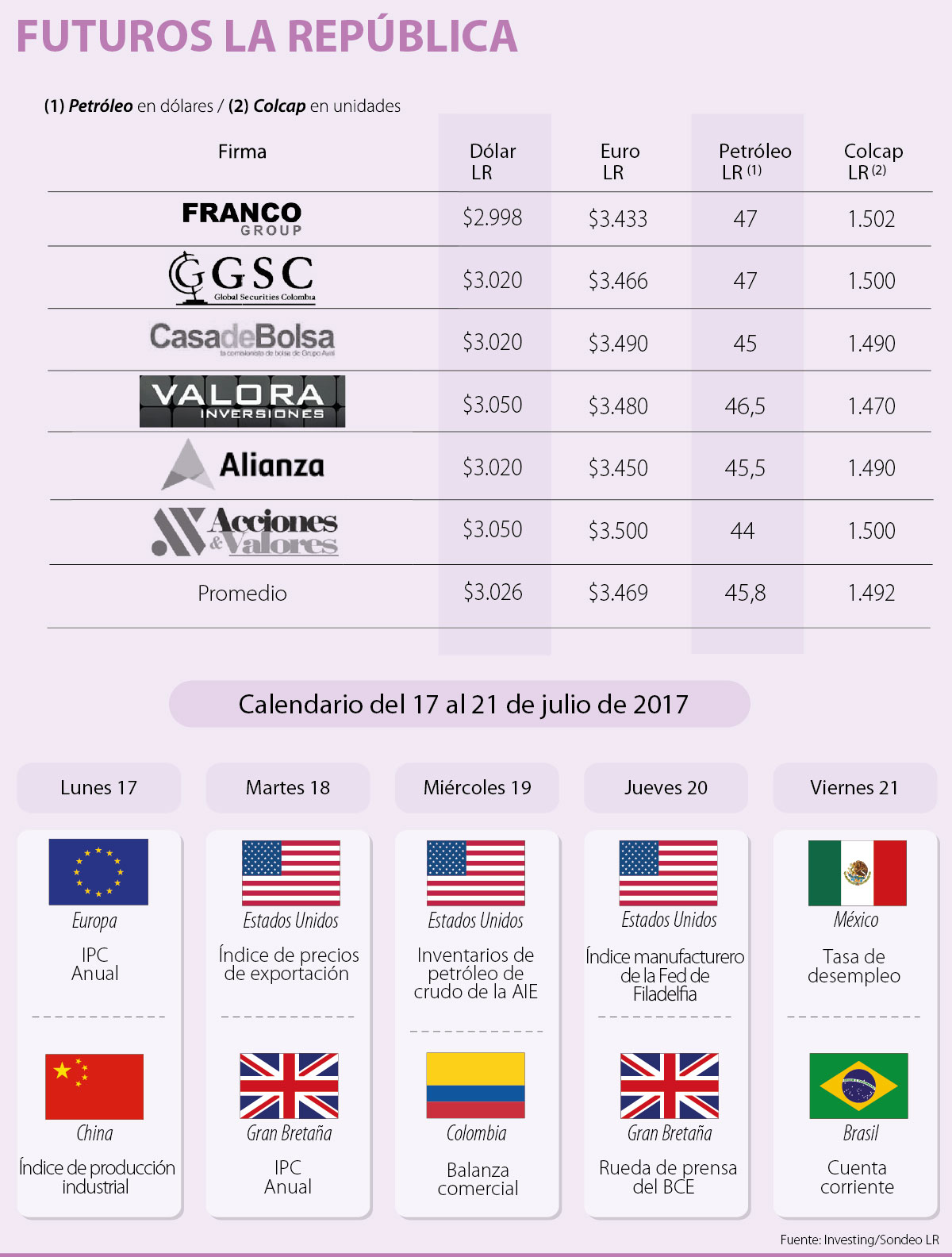“Ahora se deberá prestar especial atención al desempeño de varias empresas que darán a conocer sus resultados del segundo trimestre, entre las cuales se destacan Netflix, Bank of America, IBM y Goldman Sachs, Los futuros del S&P 500 se han recuperado y se encuentran atacando el nivel de resistencia de 2.450 puntos que corresponde con el nivel máximo histórico”, señaló Natalia Granados analista de Global Securities.
